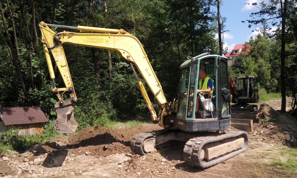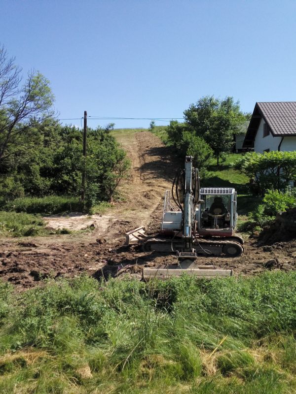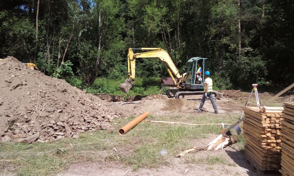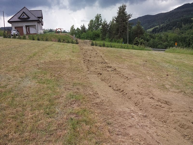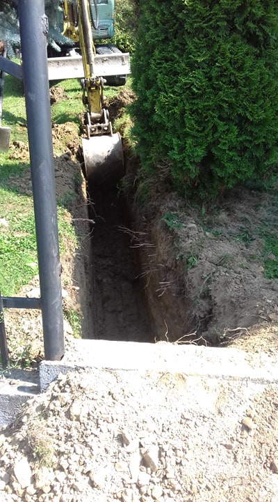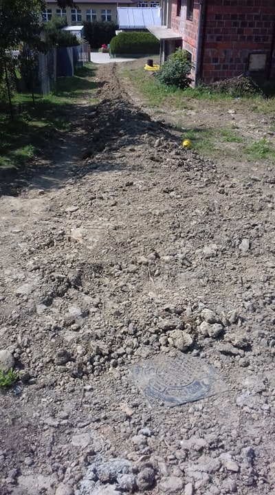 Wykonawca robót przystąpił do wykonywania wejść na działki na osiedlu w Nowej Wsi. Rozpoczęły się prace przy uruchamianiu przepompowni. Wydawałoby się, że konfiguracja terenu nie sprawi większych trudności podczas wykopów na kanał ale jednak w niektórych miejscach wykonawca borykał się z przewiertami wśród skał.