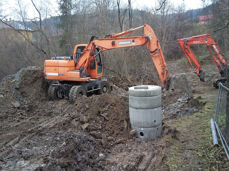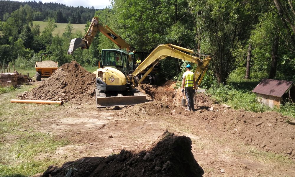 Sprzyjające warunki atmosferyczne pozwoliły na wykonywanie robót związanych z budową kanalizacji sanitarnej zgodnie z przyjętym harmonogramem na rok 2018. Roboty są mocno zaawansowane , wykonano już 13,5 km sieci kanalizacyjnej oraz 6 przepompowni.