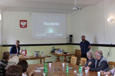 W dniu 31.05.2019 r. w sali narad Urzędu Gminy odbyło się spotkanie z podróżnikiem dla uczestników projektu socjalnego dofinansowanego ze środków Wojewody Małopolskiego pt. „Senior + - pomoc i wsparcie dla osób w wieku 60+ oraz wzmacnianie ich aktywności i samodzielności życiowej”. Pan podróżnik opowiedział słuchaczom ciekawostki z podróży do Tajlandii dot. kultury, zwyczajów, miejsc wartych zwiedzenia, itp.