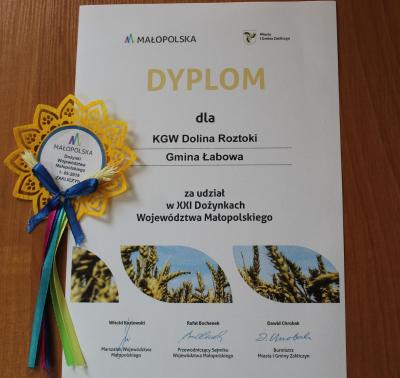 Kolo Gospodyń Wiejskich z Roztoki Wielkiej zostało nagrodzone w Wojewódzkim Konkursie Wieńców Dożynkowych podczas XXI Dożynek Województwa Małopolskiego, które odbyły się w Zakliczynie. Zgłoszonych do konkursu było ponad 30 wieńców, gratulujemy!