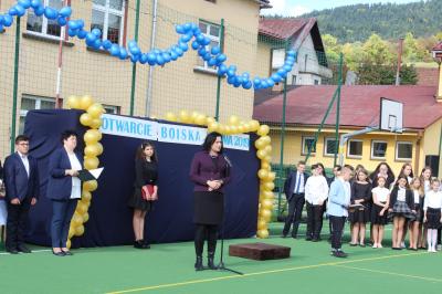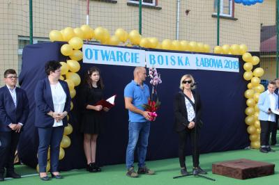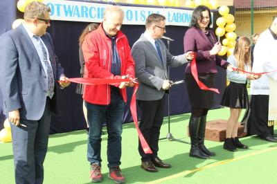 W niedzielę 29 września odbyła się uroczystość otwarcia boiska sportowego przy Szkole Podstawowej w Łabowej, podczas której dokonano symbolicznego przecięcia wstęgi. Gościliśmy Tomasza Urynowicza Wicemarszałka Województwa Małopolskiego, Grzegorza Biedronia Radnego Województwa Małopolskiego. Poświęcenia obiektu dokonał proboszcz ks. Andrzej Fik. W części oficjalnej dyrektor Joanna Złocka w swoim przemówieniu przywitała przybyłych na uroczystość gości oraz podziękowała wszystkim osobom, które przyczyniły się do realizacji tej inwestycji. Modernizacja nawierzchni boiska sportowego wyniosła 350 965,84zł. Gmina uzyskała 136 000 zł z dofinansowania Województwa Małopolskiego w ramach realizacji projektu „Małopolska infrastruktura rekreacyjno – sportowa - MIRS”. Pan Tomasz Urynowicz oraz Pan Grzegorz Biedroń przekazali dla szkoły piłki do gry. Kolejno przedstawiciele władz życzyli wszystkim obecnym, zwłaszcza nauczycielom i uczniom, korzystających z tego obiektu samych sukcesów i radości. Radni oraz uczniowie Szkoły w Łabowej podziękowali Pani Wójt - Marcie Słaby, za to że z wielkim zrozumieniem i przychylnością patrzy na potrzeby szkoły oraz za determinację i zaangażowanie w powstanie boiska. Całość uroczystości została uświetniona występem tanecznym na nowo otwartym obiekcie sportowym oraz został rozegrany inauguracyjny mecz piłki nożnej: samorządowcy kontra mieszkańcy. Panie z Koła Gospodyń Wiejskich w Łosiu dla gości i piłkarzy przygotowały smaczny poczęstunek.