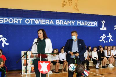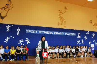 Warto marzyć! spełnia się moje kolejne marzenie, coś na co czekaliście wiele lat staje się faktem! Cieszę się, że dzięki wsparciu Ministerstwa Sportu jesteśmy w stanie w takiej małej Gminie jak Łabowa wychować przyszłych reprezentantów w sportach zespołowych, jestem pewna że na tej sali siedzi przyszły Jakub Błaszczykowski, Marcin Gortat czy Katarzyna Skowrońska-Dolata. Oddając to boisko tworzymy Wam świetne warunki. Teraz czas na Was, na Wasz charakter, na waszą chęć do pracy, słuchajcie swoich nauczycieli, trenerów. Wszystko drogie dzieci jest w waszych rękach i nogach a ograniczają Was tylko wasze marzenia! – powiedziała Wójt Gminy Łabowa Marta Słaby