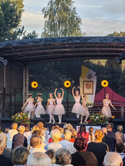 Dalszą część programu artystycznego rozpoczął występ baletnic z Krynickiego Studia Baletowego im. Władysława Szlęka. Następnie na scenie zaprezentował sie Zespół Miłośników Muzyki. Podczas Koncertu Papieskiego można było wysłuchać wyjątkowego programu artystycznego. Śpiew, muzyka, słowo oraz fragmenty wypowiedzi św. Jana Pawła II wzruszały do głębi. Za prowadzenie odpowiadał Łukasz Lech, Maciej Nieć zadbał o nastrojową muzykę, a Anna Sokołowska - Alabrudzińska oraz Mateusz Mijal wzruszali swoim śpiewem. Na scenie wystąpił również Biskup Antoni Długosz, kapłan z niesamowitą charyzmą oraz energią.