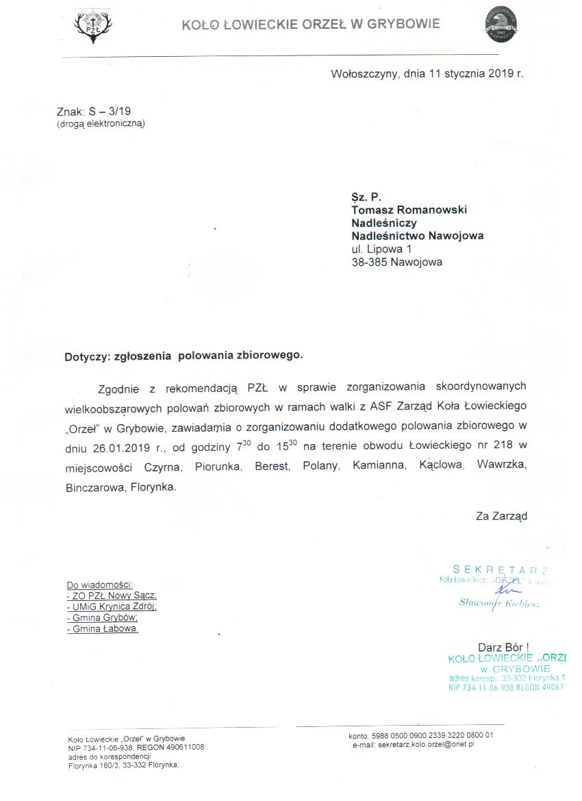 1. Roztoka Wielka Świetlica Wiejska 24 luty 2019r. I termin godz.10°° II termi
