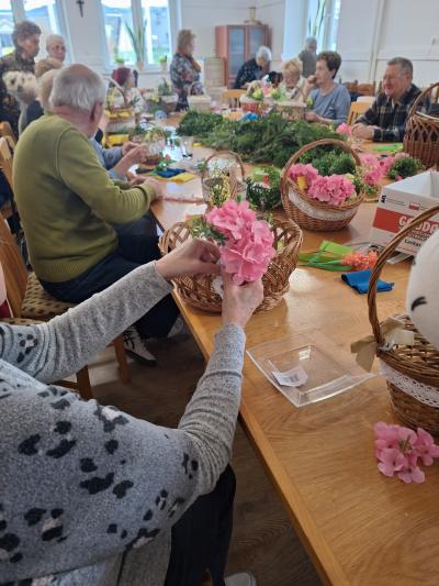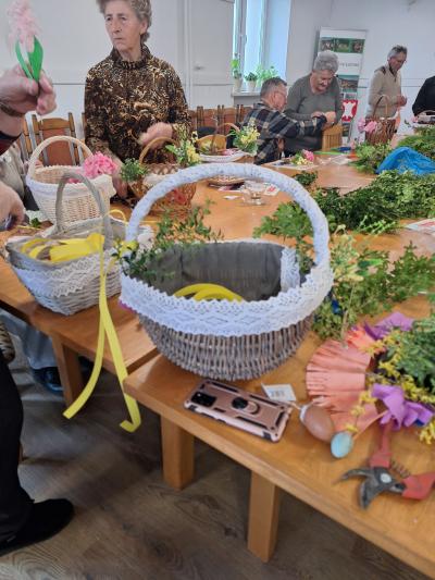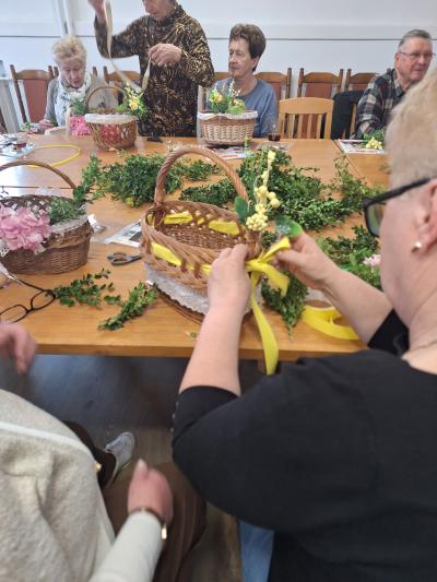Przedświąteczne warsztaty "Senior z pasją" 16.04.2025 10:33 Treść W dniach 07 oraz 14 kwiecień odbyły się warsztaty przedświąteczne w ramach projektu „Senior z pasją”. Uczestnicy wykonali palmy wielkanocne oraz przystroili własne koszyki na dzień święcenia. Poniżej przedstawiamy zdjęcia z zajęć Facebook Twitter Email Drukuj